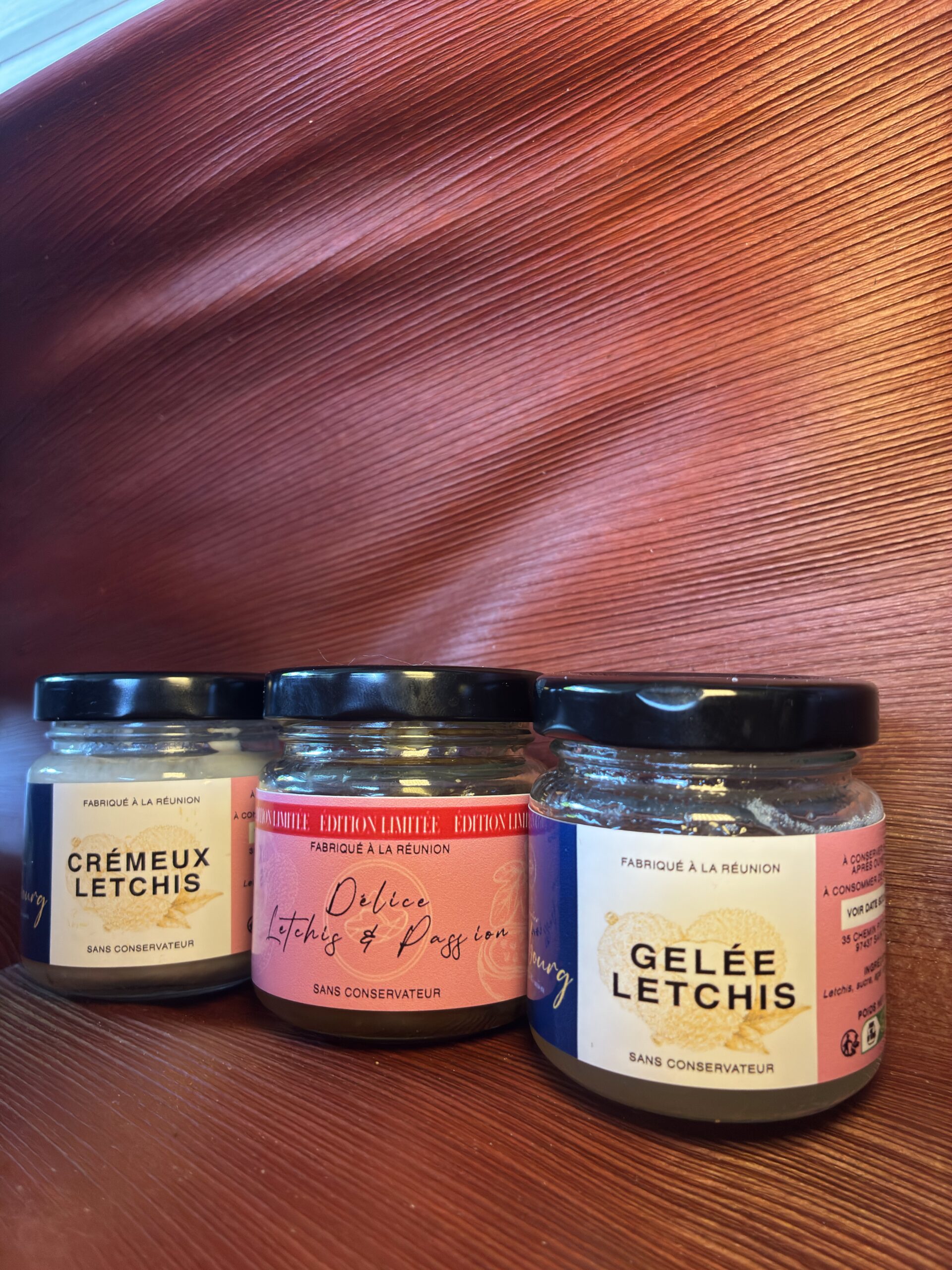 | SKU | délice-letchis-passion | coulis-orange-mangue | coulis-orange-ananas | confiture-de-banane-flambée | gelée-de-letchis | confiture-banane | ||||||